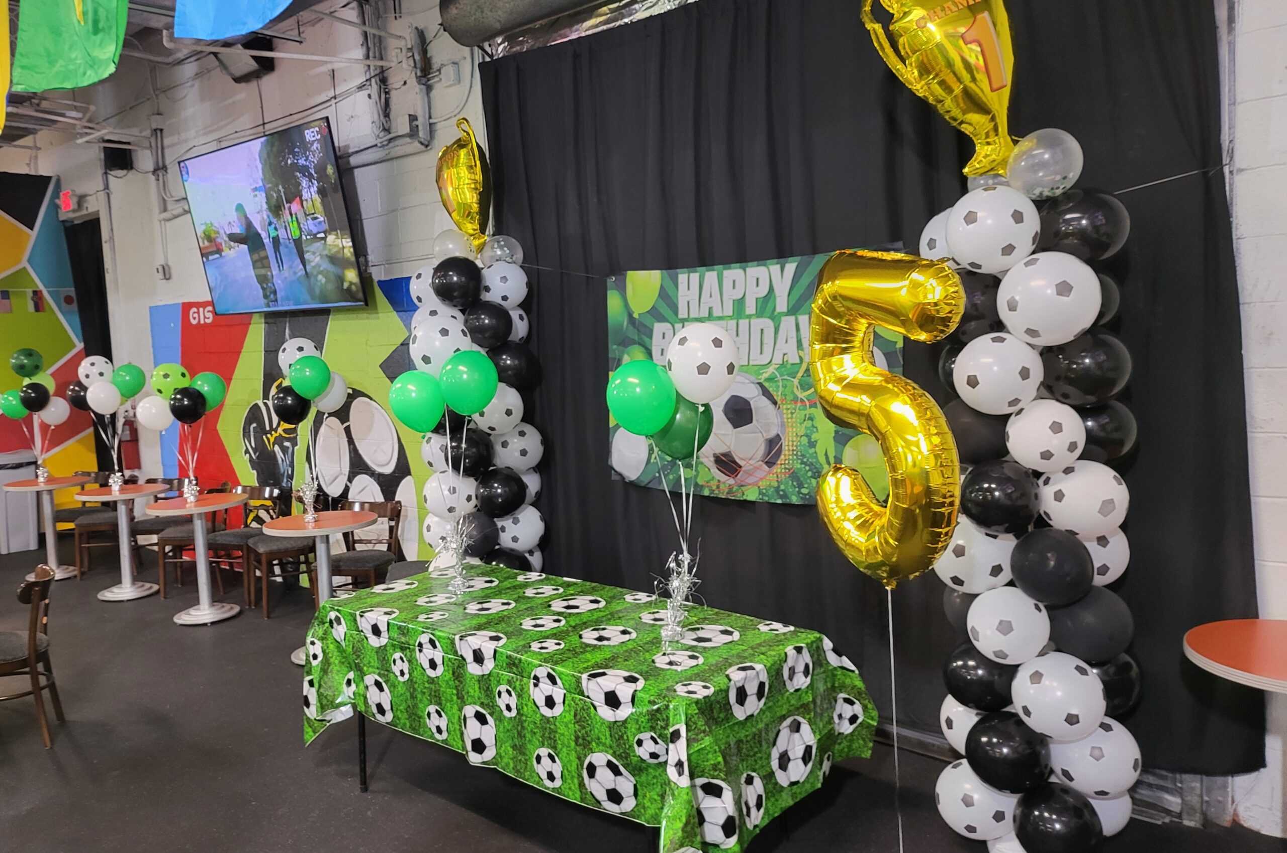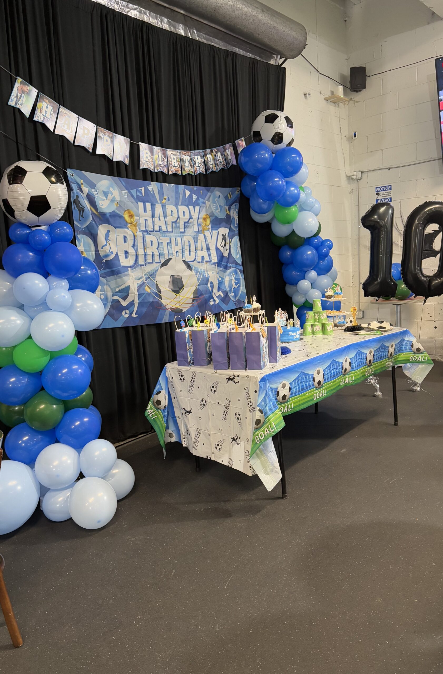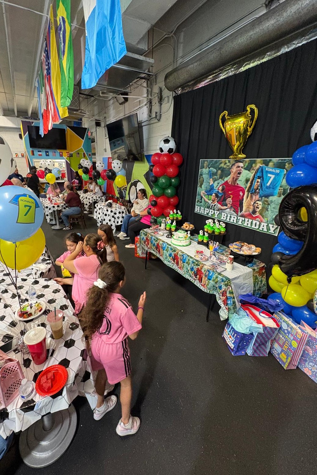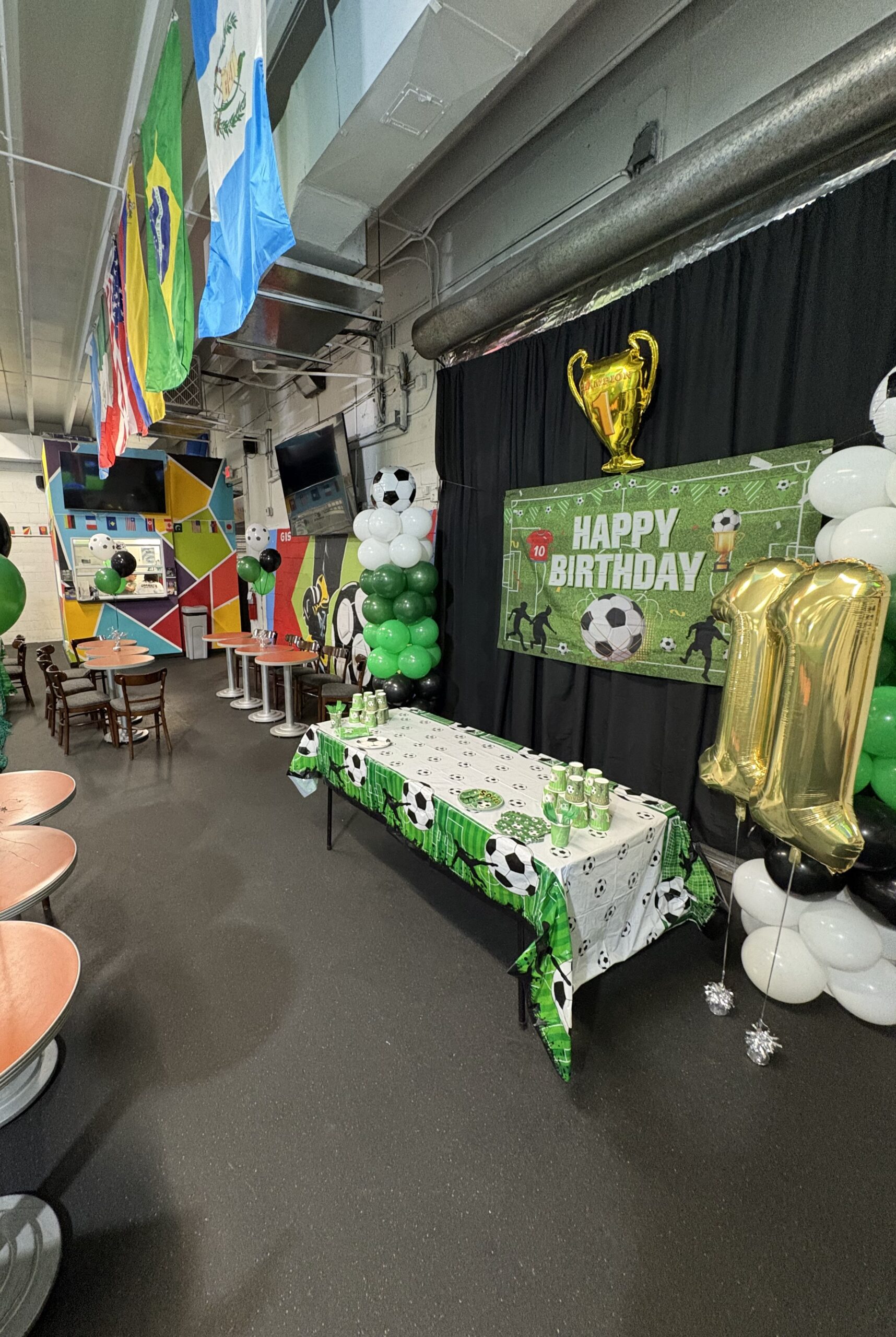 The party area will be ready 15 minutes prior to the scheduled time. There is a 15 minute grace period after the event is finalized to return the party area clean. The cleaning fee will be added to the final bill. An additional hour will be charged automatically at the rate of $120 if the area has not been cleared up after 15 min. No outside food is permitted, except for the cake, unless other arrangements are made in advance. Maximum 20 kids per party on this field.